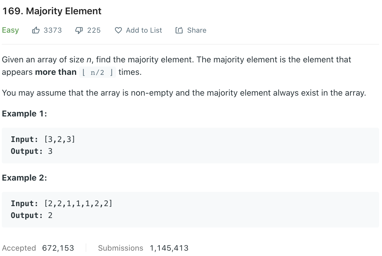 문제는 '주어진 배열에서 출현빈도가 절반 이상인 값을 찾아라' 입니다.